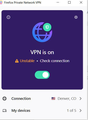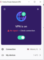 I've been using the Firefox VPN for months without any issues. This just started today. When I turn it on I get the "No Signal * Check connection" error and I cannot connect to the internet. When I turn it off I can connect.