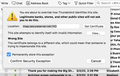 Thunderbird will not fetch messages due to "Security Exception". I called my email service provider, whose tech claims that a certificate is not required for access to the email server. They believe the problem is not theirs. I eliminated all the messages time-stamped near the time of the error from their server. The error message still persists.