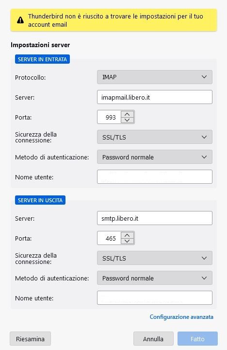 Non devi modificare nulla. L'accesso tramite app esterne è in corso di progressivo ripristino, ma ancora non funziona per tutti. -> https://tecnologia.libero.it/libero-mail-e-virgilio-mail-riapertura-progressiva-72557