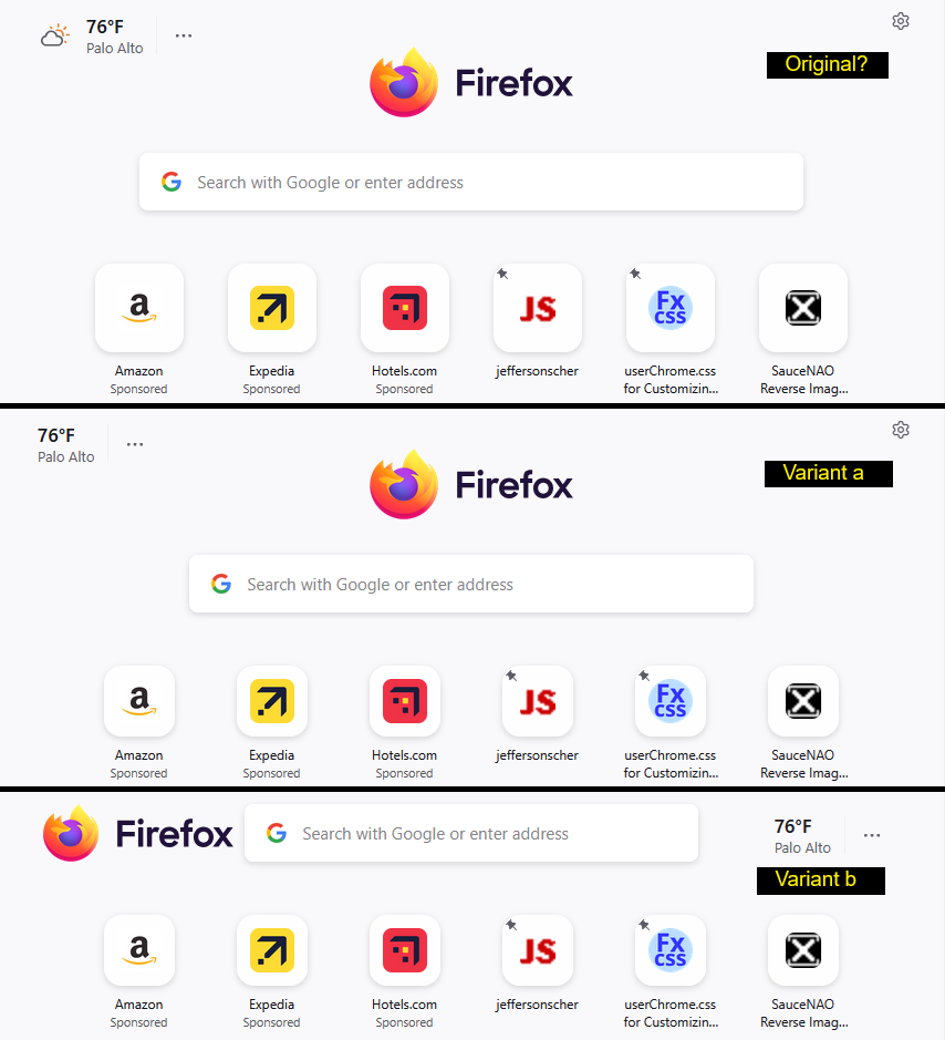 I still have Firefox 140, and this is the difference I see between the original layout (neither variant), variant "a", and variant "b":
