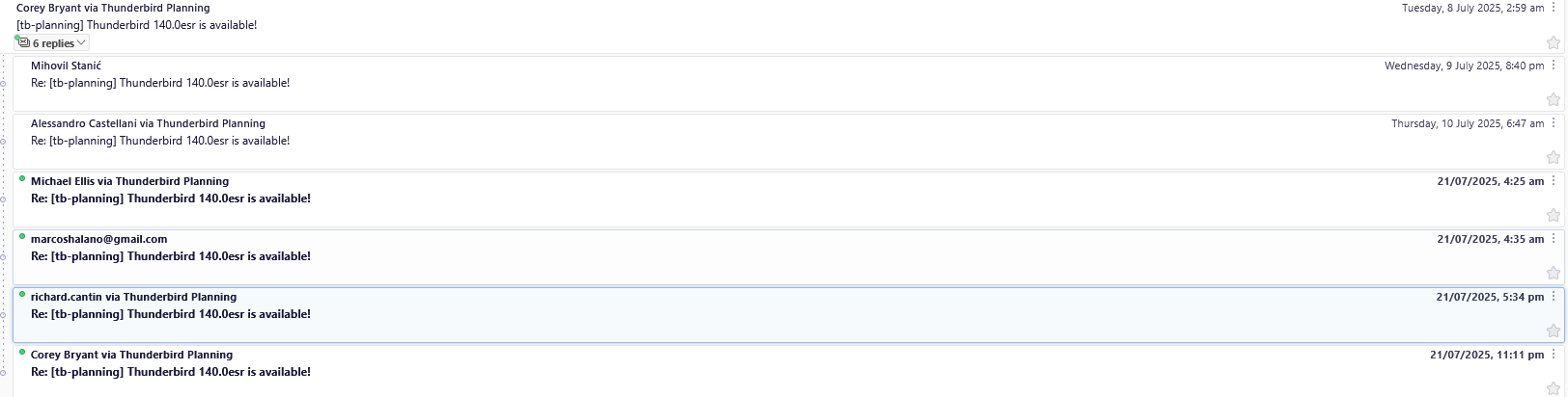Hi, Jerry. Your screenpic does not look like any threaded view that I can create and it does not look threaded. How do you create that view?