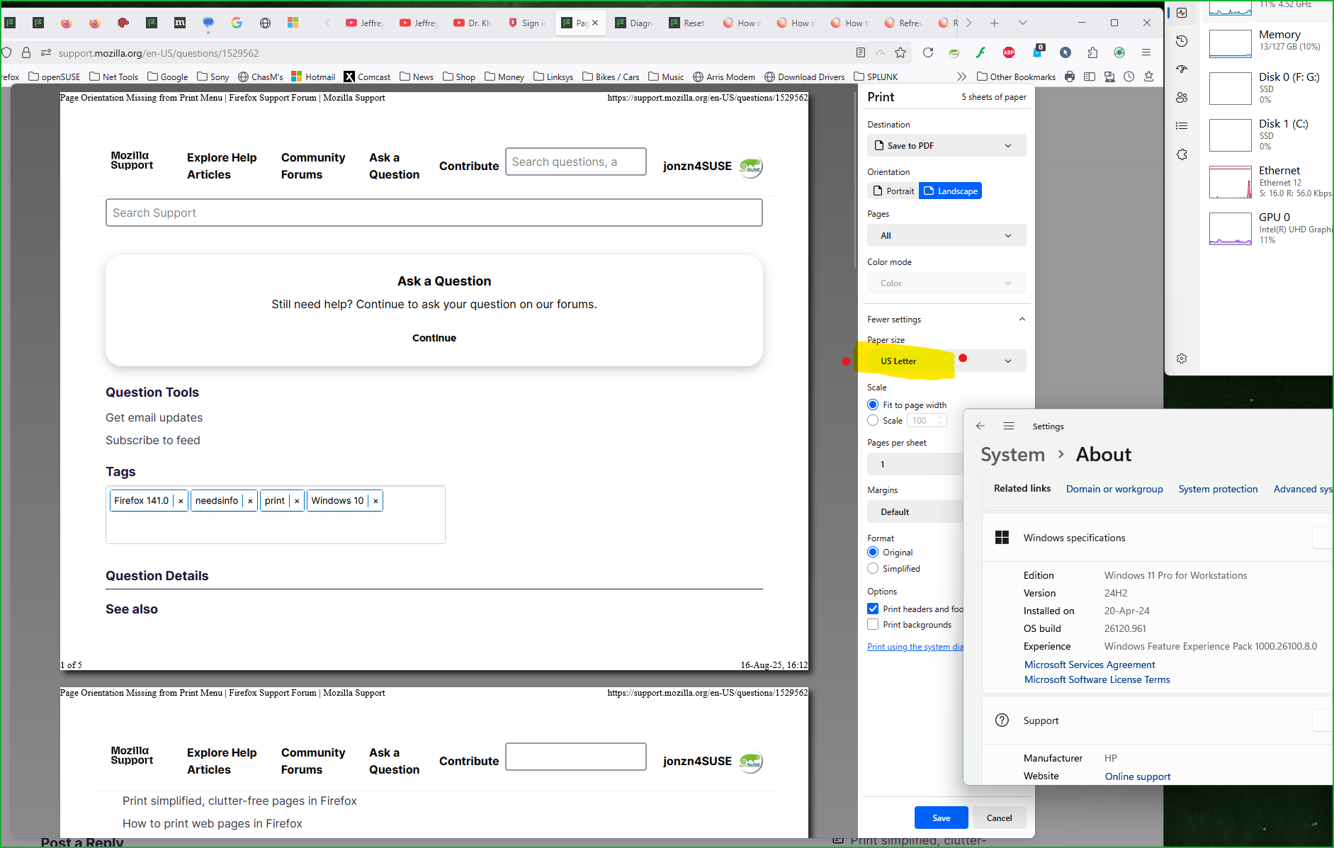 How about showing the issue in Firefox and also in another browser. Hard to help with something we cannot see. What do you get when printing this page? Just printing this page, I see the option in Linux and Windows. see screenshots