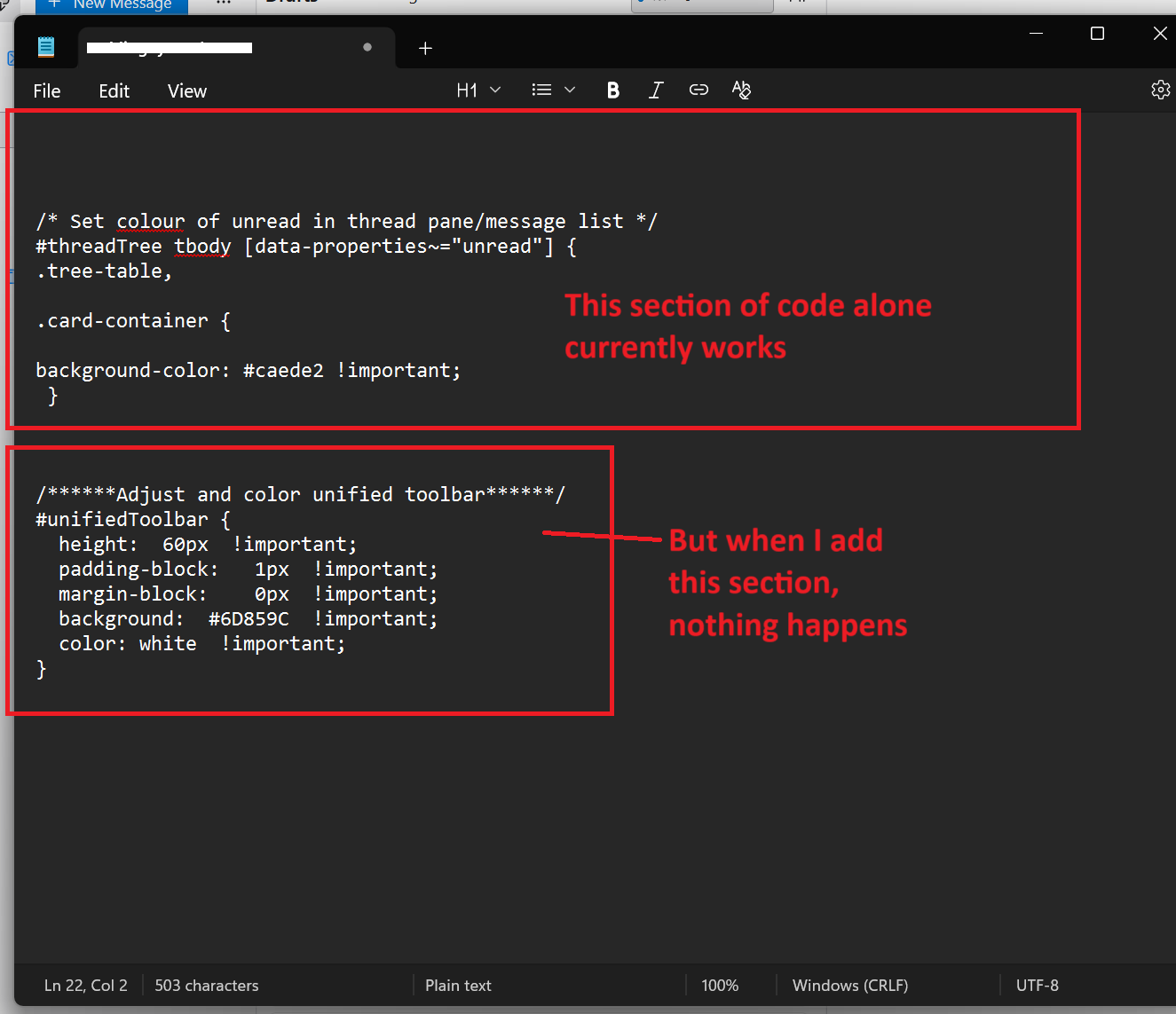 Trying to change the color of the unread background and the top header bar. Got the unread message color change to work.