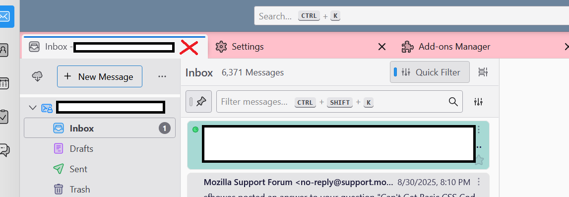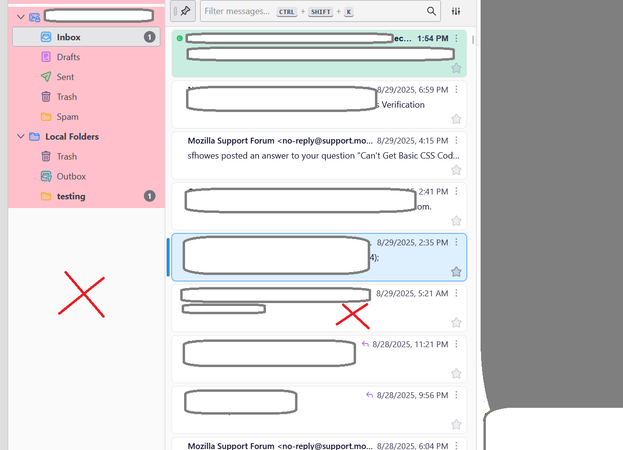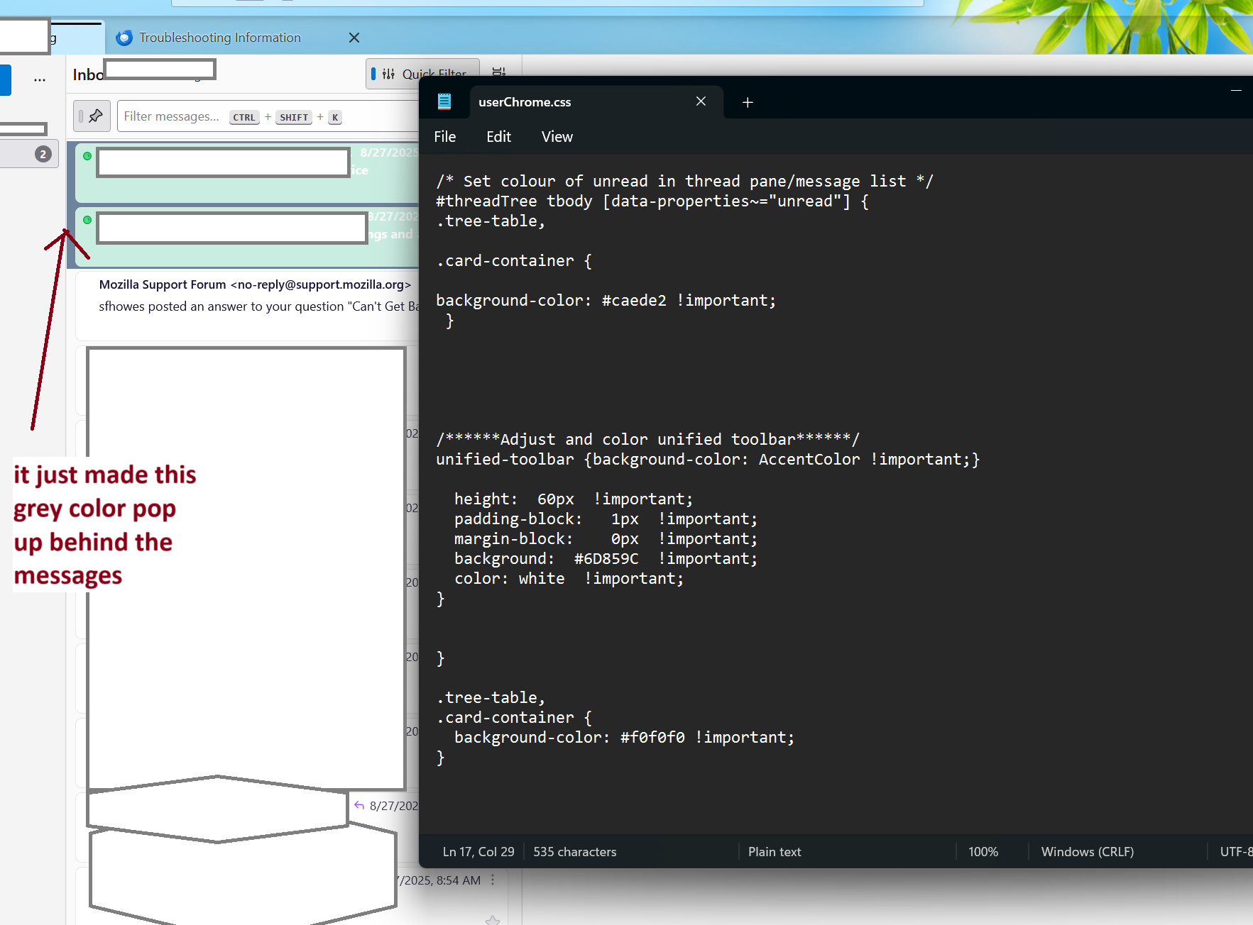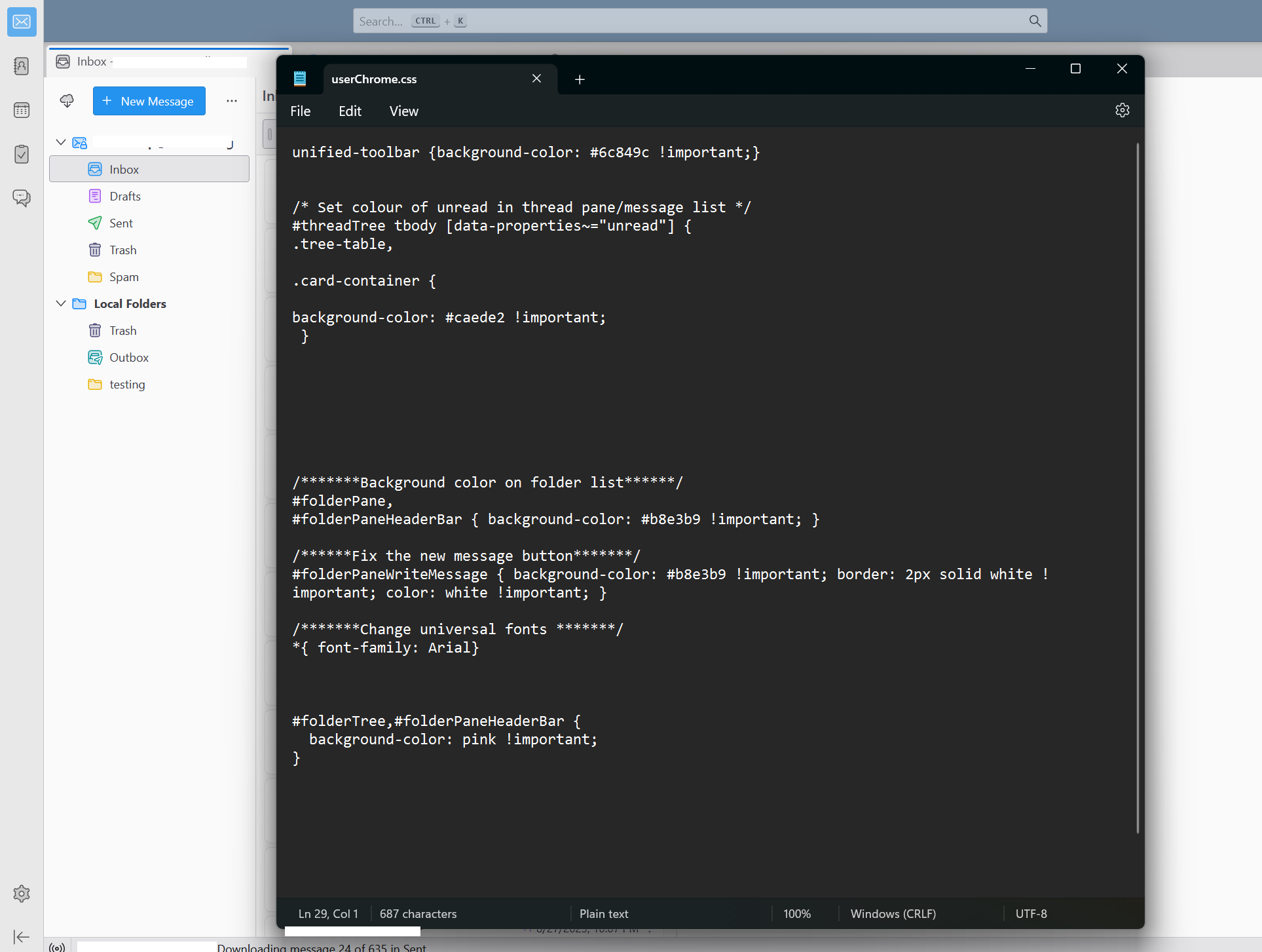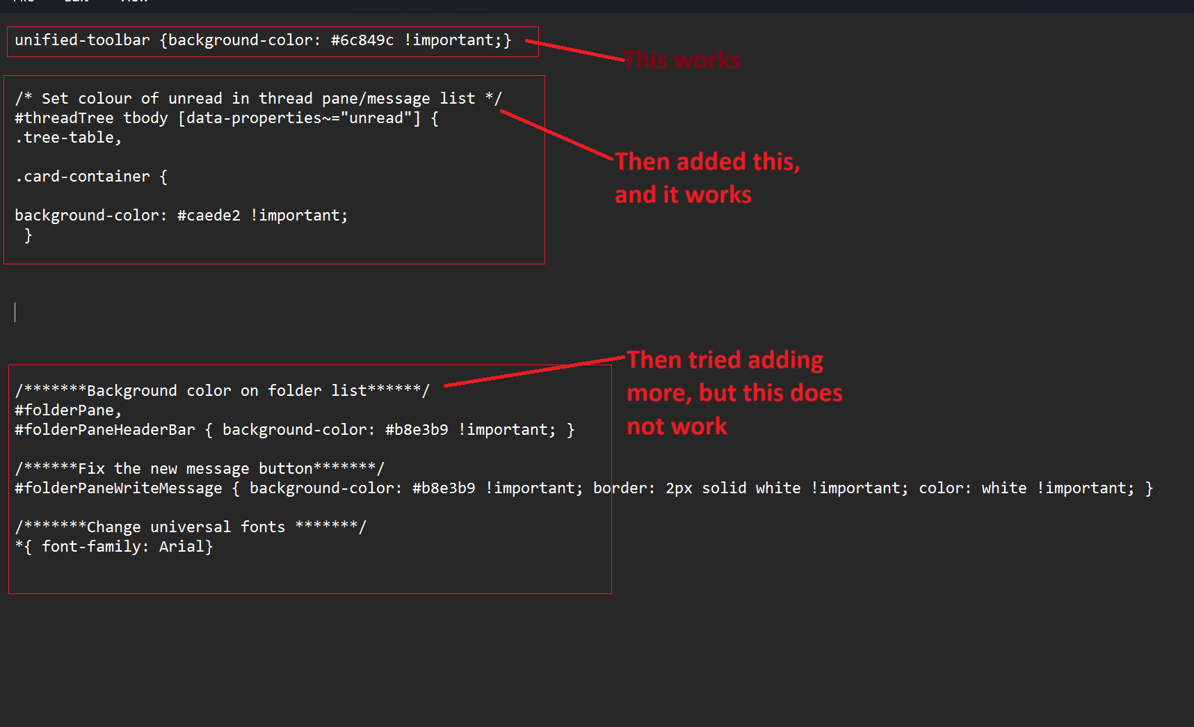Folder Pane and Folder Pane Header:#folderTree,#folderPaneHeaderBar { background-color: pink !important; }