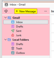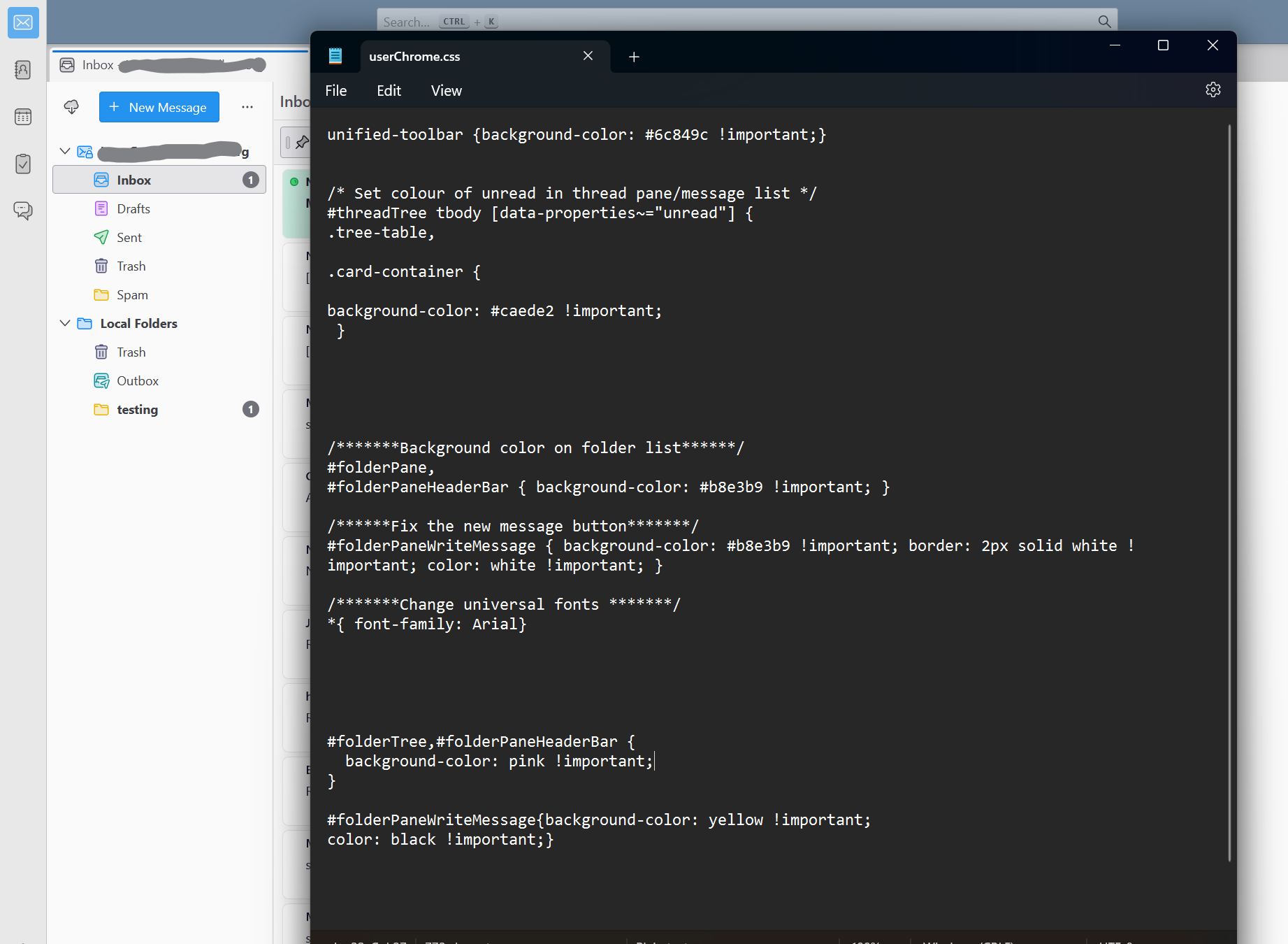 #folderTree,#folderPaneHeaderBar { background-color: pink !important; } #folderPaneWriteMessage{background-color: yellow !important; color: black !important;}