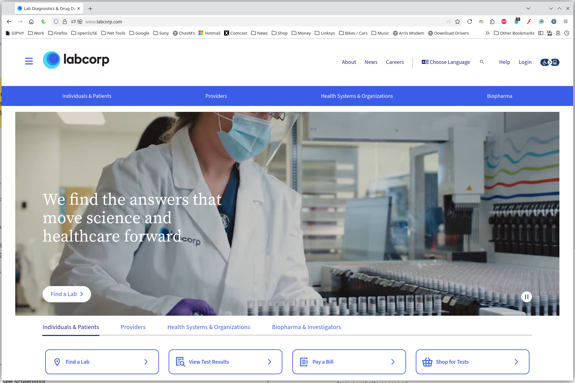 Trying to access Lab Corp website to view recent test results. Receive this message: Hmm. We’re having trouble finding that site. Why? I have accessed lab Corp website in the past with no trouble.