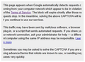 When I press enter the attached pop-ups alway come up on the screen, even after trying several times. (please see 2 attached images). I don't want to check the "I'm not a robot" box because it seems to be a scam. Please let me know if you have had any experience with this - is it a scam - and scam or not how can I stop this from happening?????