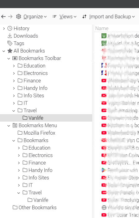 Hello, I imported Bookmarks when I came to Firefox from a previous browser. The experience was terrible and challenges still linger. Firefox has come a long way, however UX still seems to be a 2nd class citizen. Bookmarks now has somewhat duplicate directories and this in turn is causing desktop/phone sync doubt and is likely missing bookmarks.