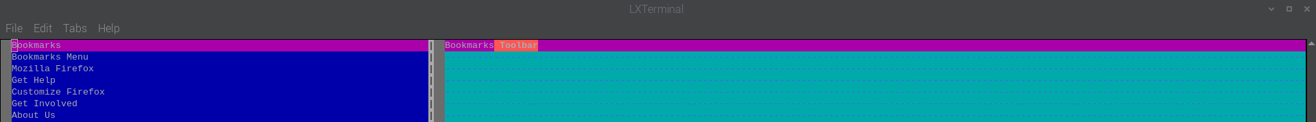 - Bookmarks Menu (Mozilla Firefox -> Get Help Customise Firefox Get Involved About Us) some bookmarks I must have manually added on the phone, probably not synced to desktop Bookmarks (appears to have synced directories as desktop, but would like to vimdiff to verify data)