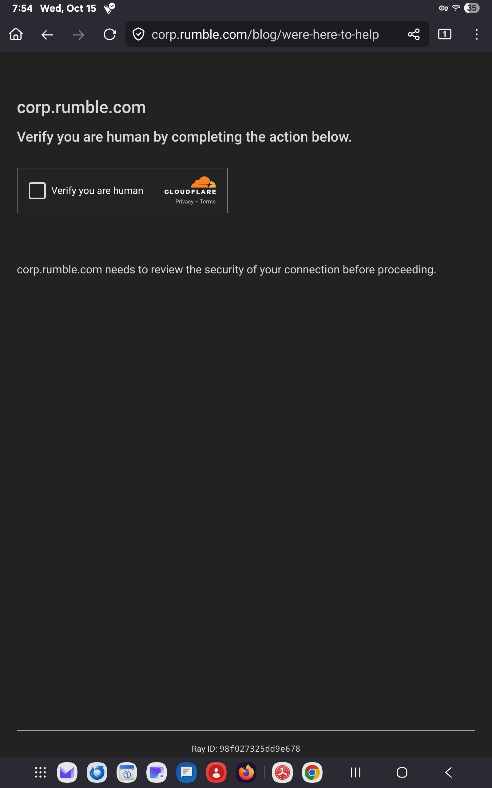 Since last week, virtually anywhere i go using Firefox Android I get the attached cloud flare test for that site. I use a VPN but turning it off doesn't fix it. I have cleared the cache, reinstalled the browser, and the problem persists. Curiously, if I log out and use Firefox without logging in, it stops. Chrome, Brave and Edge don't do this. Thanks, Mike
