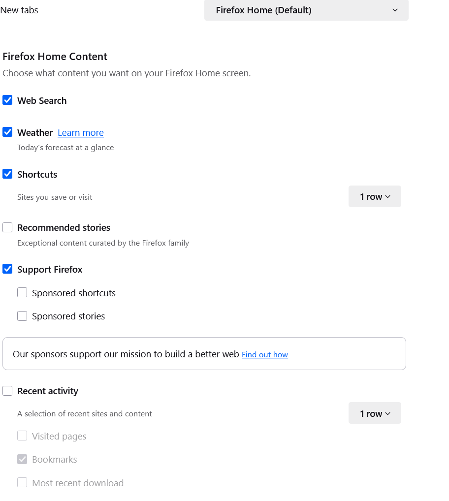 Thank you for the reply! Shortcuts are checked to be one row, see screenshots below. The link to the article isn't any help because the article tells you how to assign shortcuts to the tiles. I don't have any tiles to assign shortcuts to and turning a row on only moves the Firefox logo down the page. How do you get blank tiles to appear?
