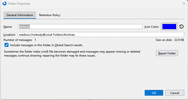 I have tried several different approaches to correct this "mailbox://nobody@Local Folders/Archives" to set up my local folder and reduce my providers quota. but I havent been able to change it. Has anyone been able to fix this and direct it to a local NAS folder?