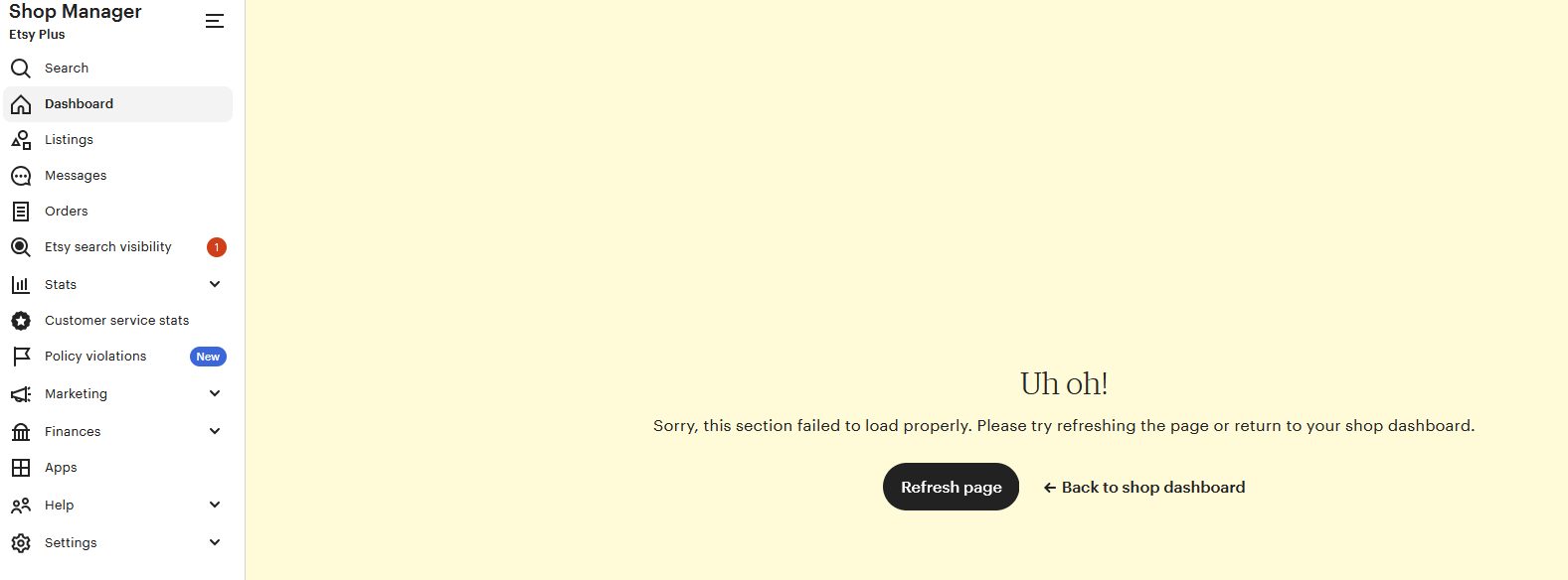 Etsy Dashboard issues