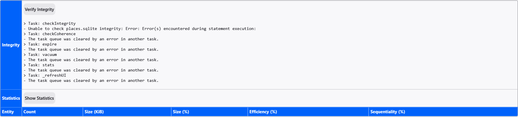 (Your suggestions will not work with an SQLite area that has been basically destroyed by CCleaner.)