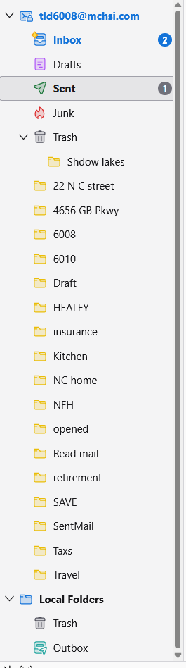 Do you want the Shadow Lakes folder in the trash or do you want to move it out of the trash? Click and drag it back to your IMAP account. I had tried to delete it it's no longer needed OK, if the message counts match in all the folders, we can now copy the messages to your local folders. Start with one folder, 22N C Street. Do this: