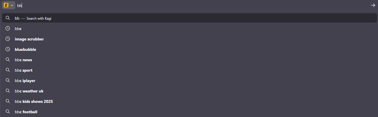 So, I configured the suggestions in the search bar so that nothing from my history/previous searches is displayed (see attached image with current settings). However, suggestions from my past searches still continue to appear. I would like only the autocomplete suggestions from my search engine to appear (I'm using Kagi). I already tried to delete my browsing history (Crtl + Shift + Delete - Everything, browsing and download history), it deleted everything but my past searches... Can somebody help me?