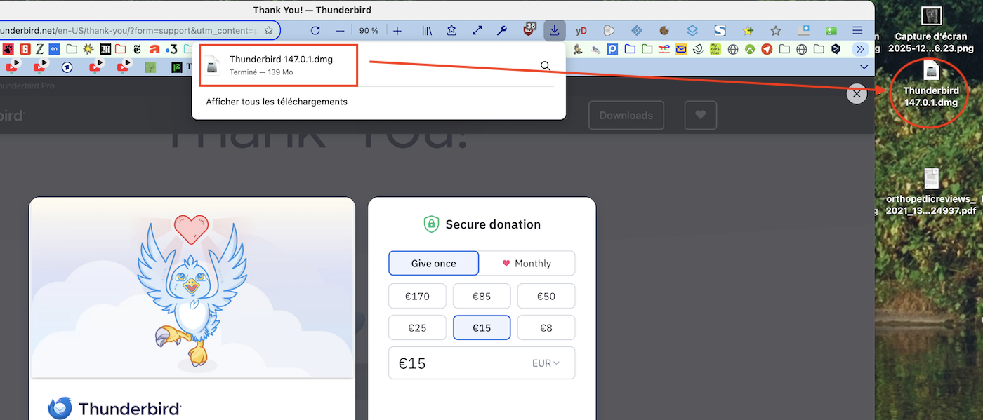 I'm trying to install Thunderbird on a Macbook - macOS Tahoe 26.2 I've made a donation but Thunderbird won't download.