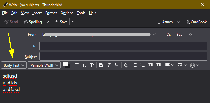 What about the Style chooser list in the Compose window? Is it set to Body Text? See attached image.