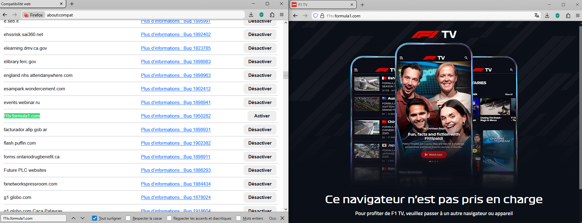 Since a couple of days we get the announcement F1TV.formula1.com/nl/ is not compatible with this browser Use an other browser or hardware many Years there was no problem
