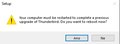 Instalace verze 78.6 jako by "zamrzla" v půli, Thunderbird nemohu otevřít, všude (v menu Start, na ploše i na hlavním panelu) mám jen ikonu setupu, která při kliknutí dává dialogové okno o nutnosti rebootu počítače (viz příloha), který jsem ovšem restaroval už aspoň osmkrát a nic se nezměnilo. Pro jistotu jsem udělal MozBackupem zálohu - ten rozeznal už nainstalovanou verzi 78.6. Nevím, jak dál, jak se mohu dostat k poště.