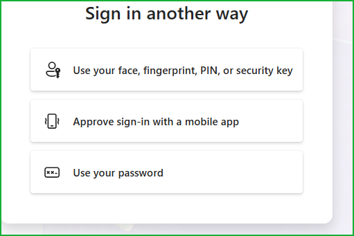 No, it's username, code from the app, or password. See screenshot I posted. I always use my password because I don't want to deal with putting in my pin to get in the phone and then get the code from outlook app. What security software besides MS Defender are you running? Windows home or pro?
