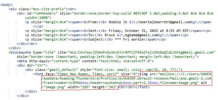 I recently installed Tbird on a new Windows 11 laptop. Now, any replies or forwards show a placeholder for inline images, not the images themselves.
