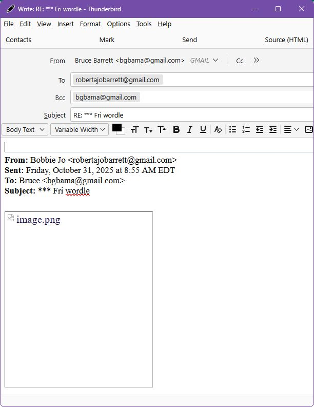 re :I have a Windows 7 laptop with Tbird. Replies and forwards to messages include any inline images, as would be expected.