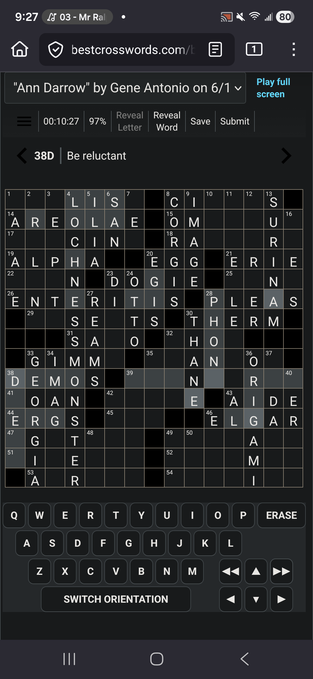 Maybe it deselects when the focus shifts, maybe it doesn't. Maybe it shows which square is active, maybe it doesn't. Eventually, I back up a page and then return, which clears the highlighting but not the words.
