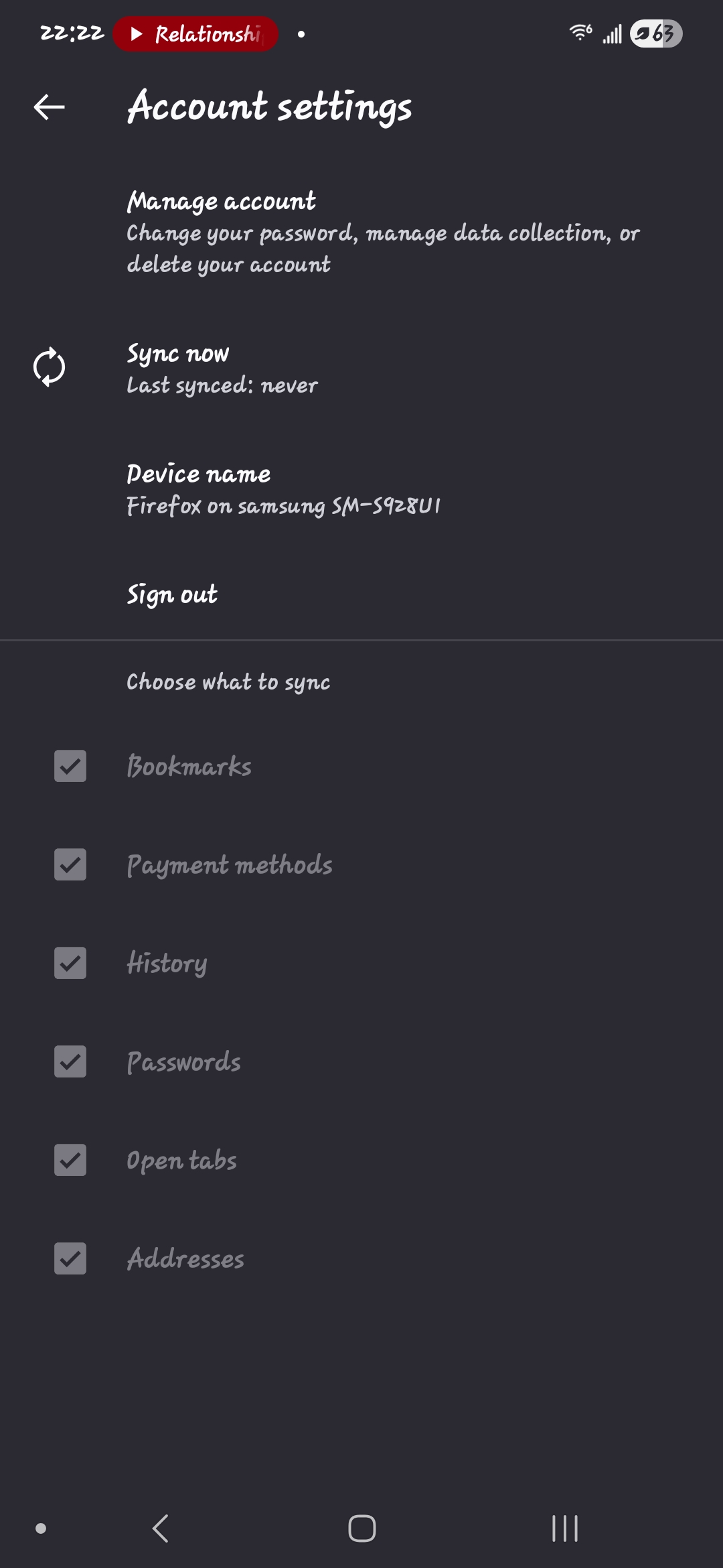 Backup and sync is not working on the phone and it's starting to piss me off beyond belief because this is why I got rid of Firefox in the first goddamn place. The sync button is not working at all I cannot get it to sync at all to my desktop nothing is working and I can't access my passwords I can't access nothing.