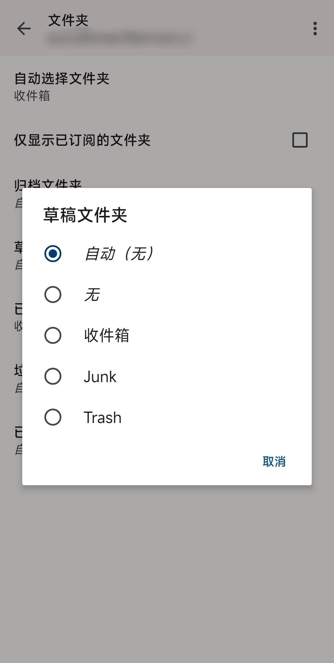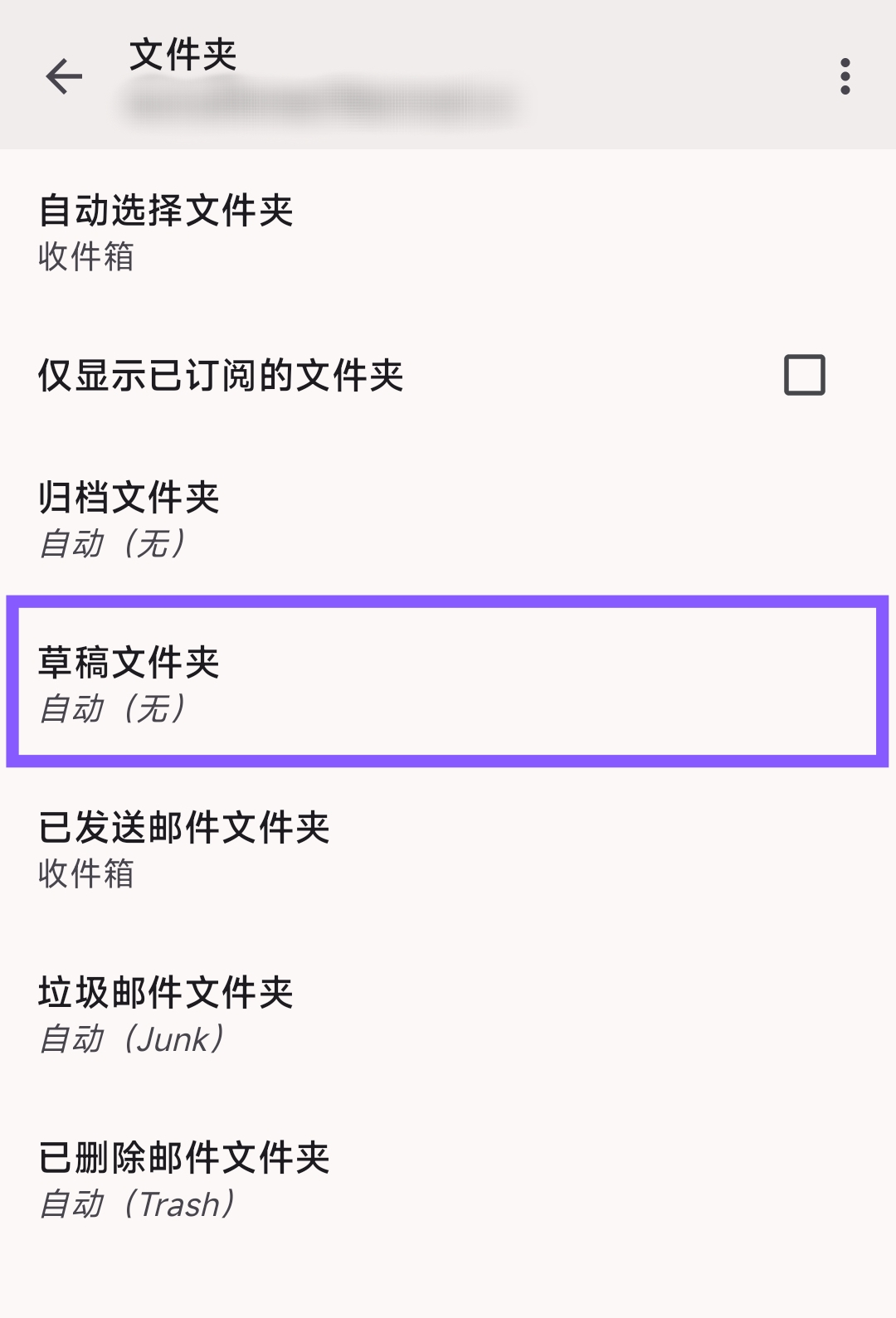 3. Navigate to settings > account > folders > draft folder and select the 'Draft' folder.