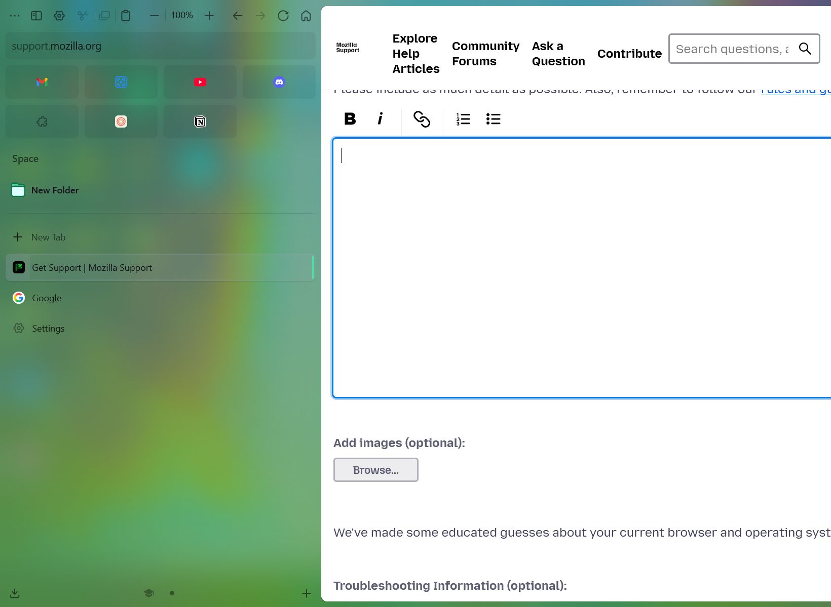 Hi, I'm afraid we don't support any third-party browsers here.
