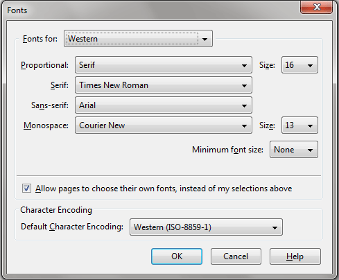 I apologize if this is stupid, but I can't get started on this solution. Where is the tools/options/fonts & colors menu that you refer to? I'm using W7 and firefox.