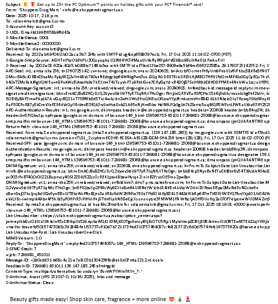 how do I remove all this technical info appearing at the top of an email I am trying to print? I just want to see the to/from/date/subject basics!