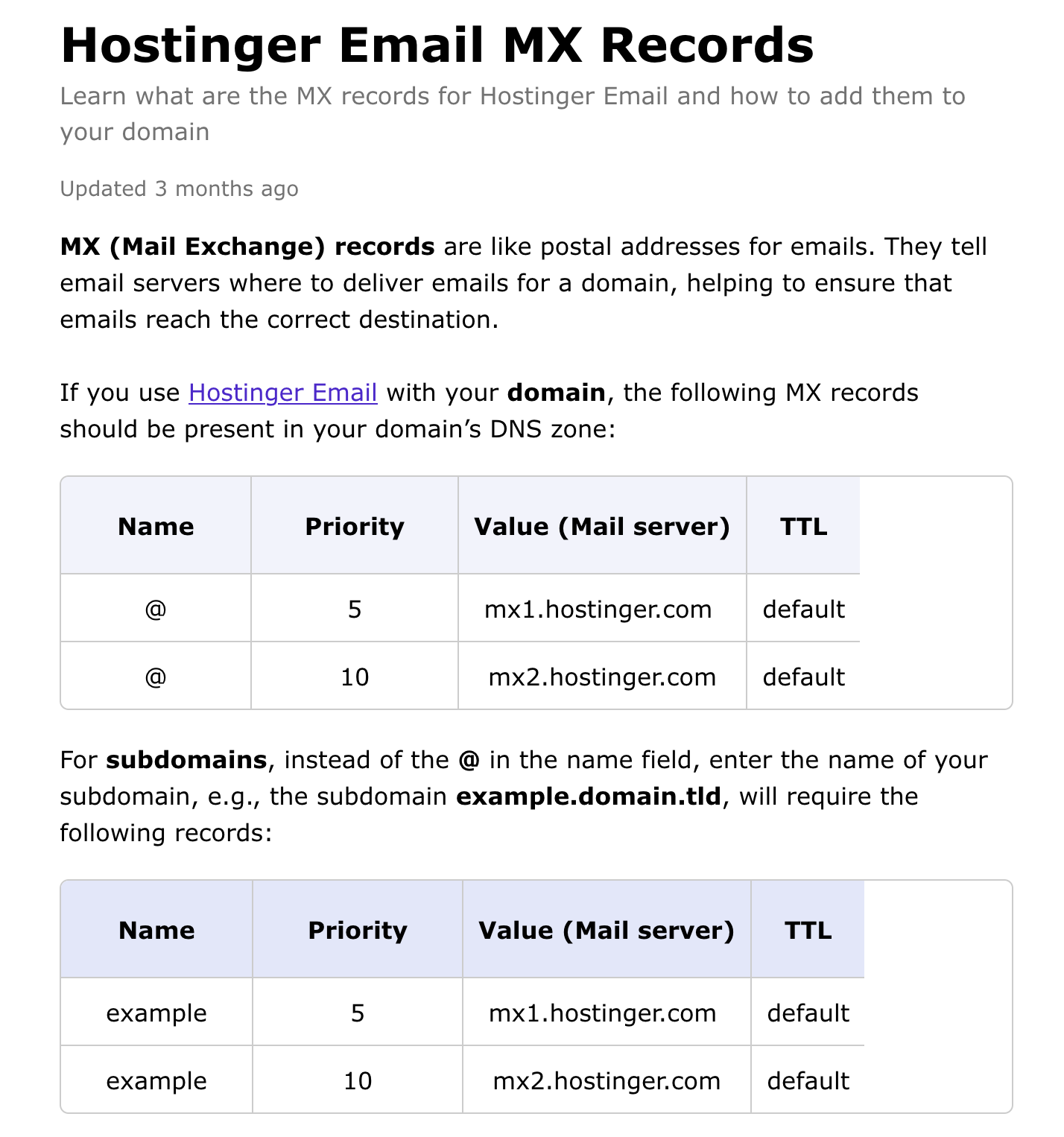 - For an e-mail account hosted at Hostinger, what should my MX records be?