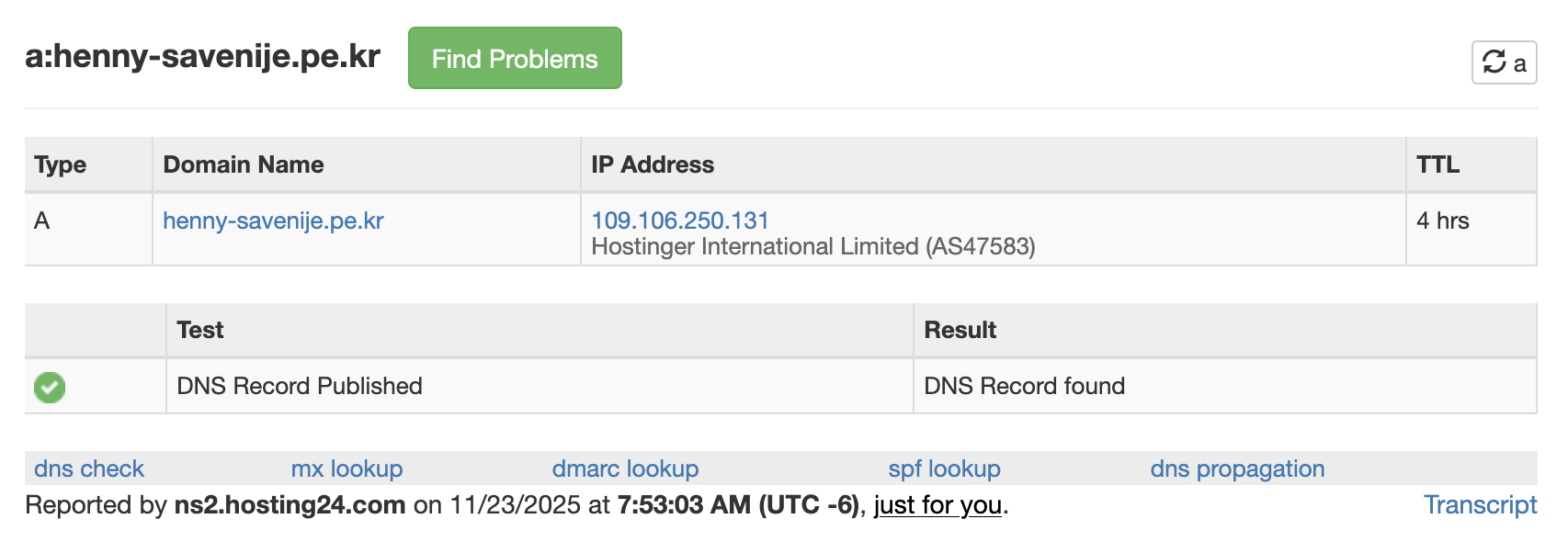 By the way, your domain points to an IP address at Hostinger, but you said that you host your website on a server at home. See the second attached image.