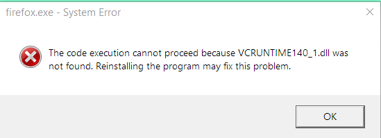 The error message when I first installed Firefox (image added) didn't reappear during re-installations.