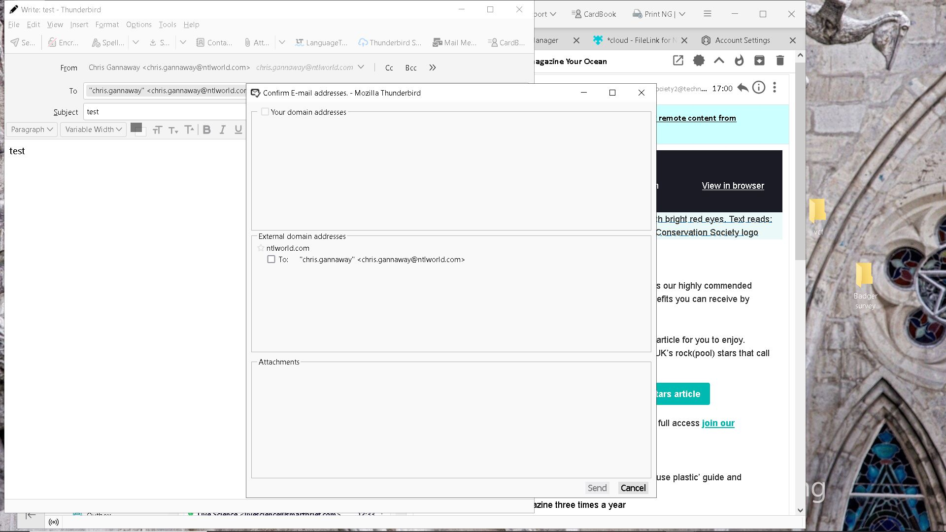 Unable to send any emails although all the server settings are correct have the attached dialogue box come up see screenshot. suspect this is not directly a prob with Thunderbird as was having problems with some undelivered email with outlook.