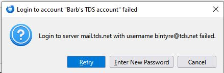 I forgot to mention that my partner is getting the same error on his Thunderbird email account so I don't think a repair is the fix.