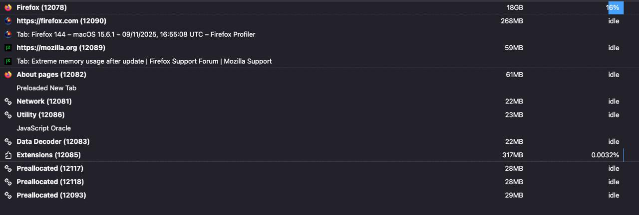 Hi, after latest update just now, the browsers uses up to 45gb of ram within a few minutes! Not sure what it is, I am on MACOS Sequia Version 15.6.1 (24G90) macbook pro M1