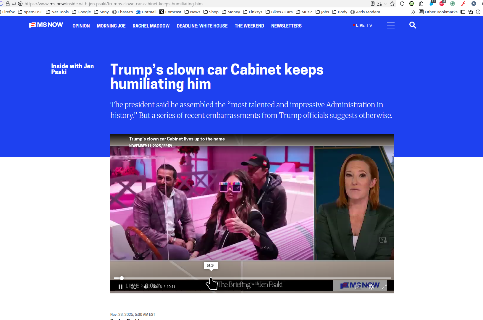 I haven't been able to stream videos from the MS NOW website for the last 2 weeks. It has worked great for years. And it's only the MS NOW site, all other websites will play videos. I've tried tips from the web for 5 hours. Nothing worked. I've contacted MS NOW help, and they recommend a different web browser, but I'm happy with Firefox that I've been using for the past 12 years. So far I have: Reloaded the page Checked internet connection Restart browser Restart PC Cleared cache and cookies Disabled extensions Firefox is up to date Reset browser settings All graphics drivers are kept updated Scanned for malware Turned off Firewall Did a msdt.exe -id MaintenanceDiagnostic Disabled all non Microsoft startup sevices