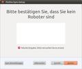 Running Firefox 3.6.11; installed Firefox Sync 1.5 add-on, but unable to complete set-up as no image, just blank box visible at the "Prove you are not a robot" step, no text to type in. Also running with No Script (set to accept Mozilla) and Request Policy add-on (also set to allow requests from Mozilla). My system currently running Ubuntu 10.10 on a 64 bit Intel i5 processor. Ubuntu is installed as an application under Windows 7 (using wubi), but seems to run independently in it's own virtual partition once Ubuntu is selected from the boot-up menu. My internet connection is AT&T/Yahoo DSL thru my land-line phone using an Ethernet interface to an SBC/2Wire modem, which shows three green LEDs indicating normal function. Strangely, the text image did show OK on the Firefox Support Post Question form. Why would the text image not show on Firefox Sync Set-Up step "Prove you are not a robot" ?
