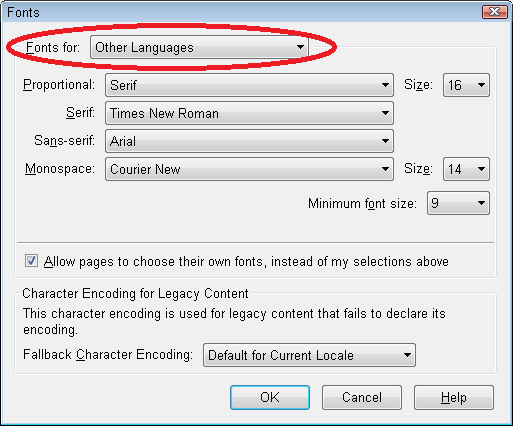 So I just need to set up my preferred fonts for "Other Languages" in addition to "Western" to get the overall behaviour I want. That's great.