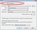 Forgot to mention: you change between character sets such as Western and Other Languages using the control at the top of the Fonts dialog ("Fonts for:").