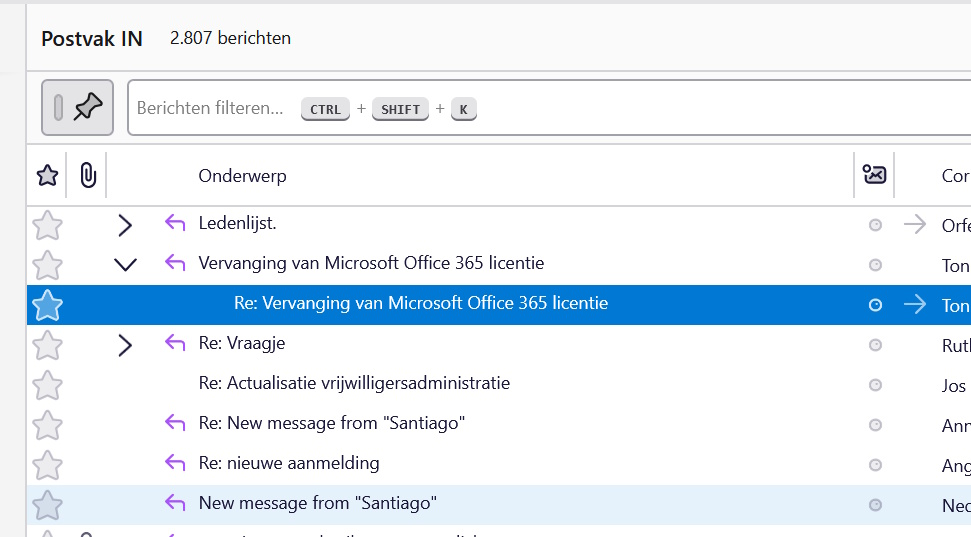 Sinds enige tijd worden de mails in de inbox gegroepeerd per onderwerp. Dat is voor mij niet handig. Het gebeurt te vaak, dat in een antwoord op een mail andere onderwerpen worden aangesneden. Als ik dan later die andere onderwerpen wil terugzoeken kan ik ze niet meer vinden omdat die mailtjes verborgen zijn onder de eerste mail met het eerste onderwerp. Door de werkwijze die ik voordien hanteerde, kon ik het meestal gewoon op datum terugvinden.