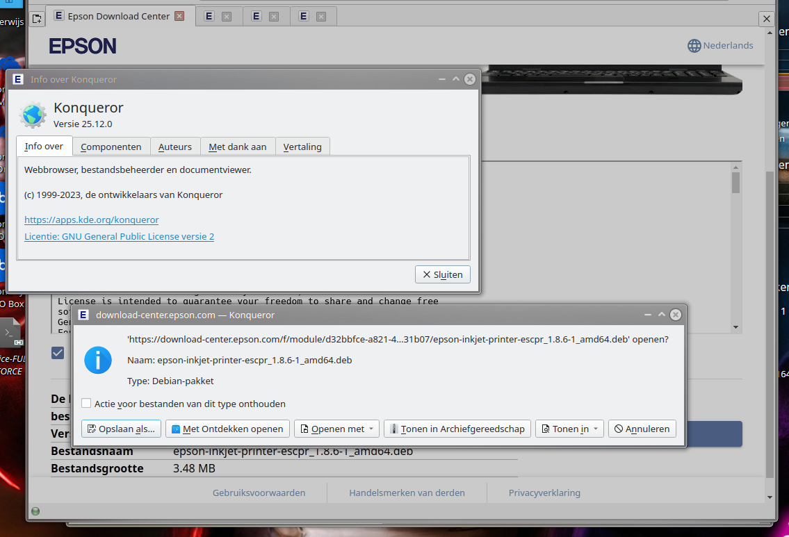 when it try to download Linux .deb package on Linux, it doesn´t ask to save file, just open in new tab (image-1, image-2). Even with "always ask to save" enabled. When it try to download with Konqueror, it works perfectly. (image-3)