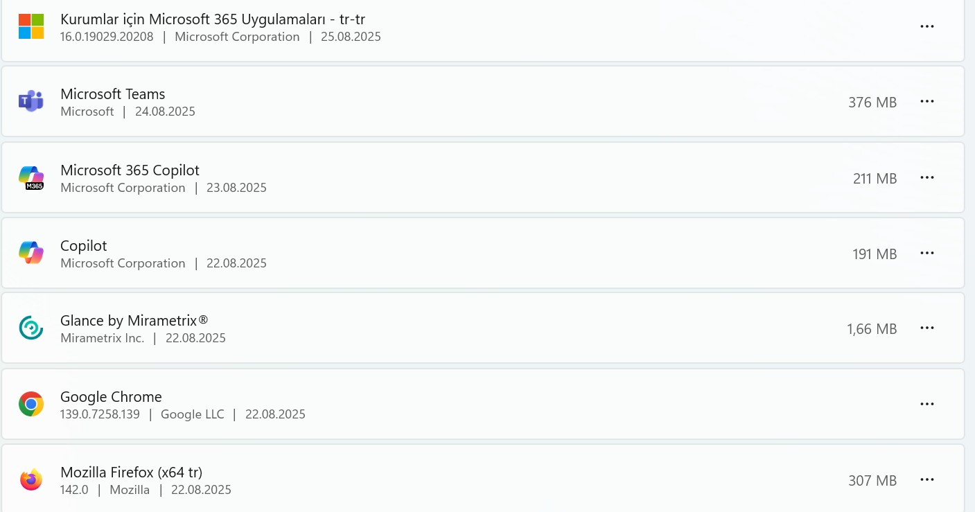 Yüklü uygulamalar ve tarihleri (Firefox'a yakın olan) ekteki gibi. Mesleğim gereği kullandığım yazılımlar var. Ancak açıkçası neyin sürekli Firefox'a reset attığını anlamıyorum. Bunu sürekli belli sürelerle yaşıyorum. Firefox'u kullanamaz hale geldim.