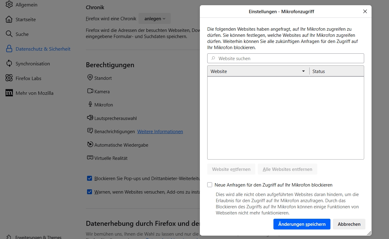 KI antwort: Wenn das Duolingo-Mikrofon nicht funktioniert, müssen Sie zuerst die Mikrofonberechtigungen für die App überprüfen und sicherstellen, dass Duolingo Zugriff auf das Mikrofon hat. Falls das nicht hilft, aktualisieren Sie die App und starten Sie Ihr Gerät neu. Als letzte Schritte können Sie auch versuchen, sich ab- und wieder anzumelden oder einen anderen Browser zu verwenden', falls Sie Duolingo im Web nutzen. Ich bin ein Fun von Firefox - Möchte weiter benutzen! - und möchte mein auspache verbessern, es ist erforderlich Microfon zu benutzen. Mikrofonzugriff kann nicht gesetzt werder - Siehe Anhang -
