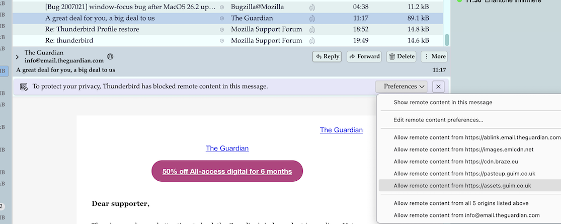 Is there a faster way to allow images in incoming messages? Manually copying email addresses to Tools/Settings/Exceptions is a chore when processing a lot of mail every day. If there's maybe an extension/add-on that would be great, though I can't find one.