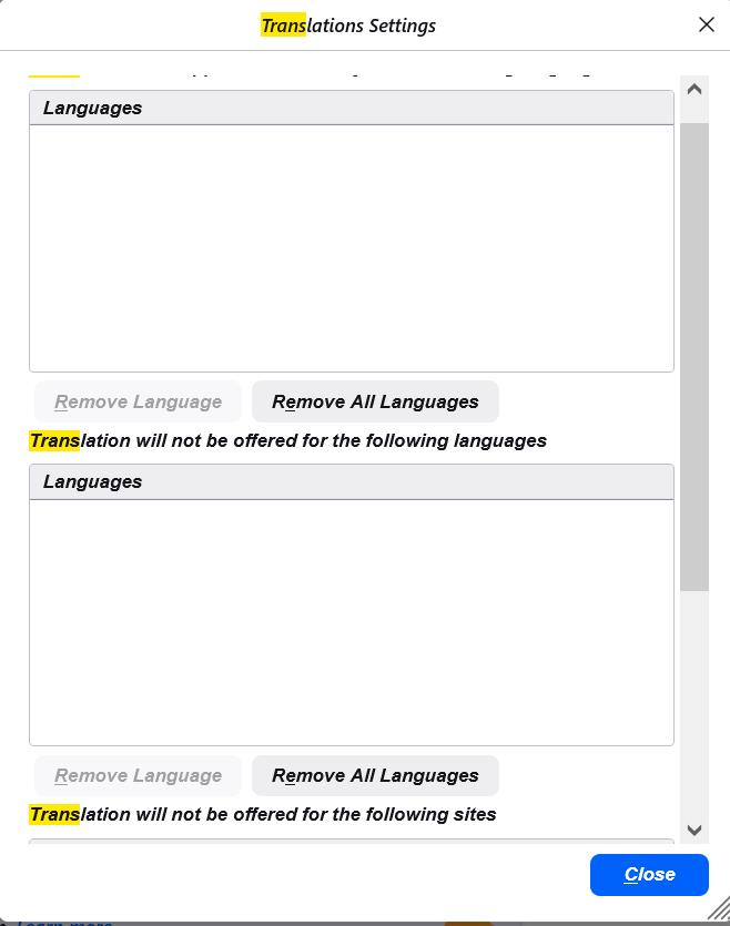 cant set translation setting, languages are set but can't do auto , cant enter any info on the dialogue