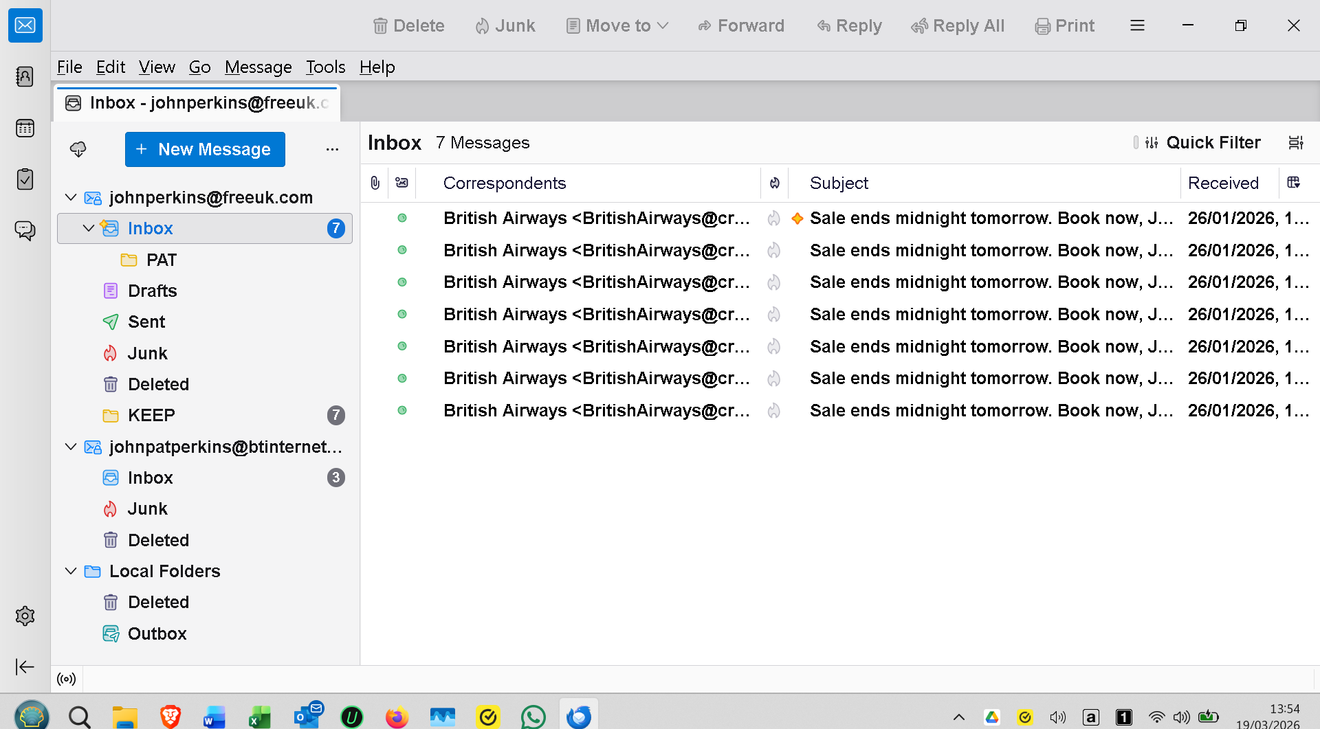 Although 1900 or more messages are reported, Thunderbird only downloads a few - 18 once, 10 and now only 2 - before stopping. After deleting all messages, stopping and restarting Thunderbird, it then downloads the same few - or less - again, no new ones, and the are very old ones. Screenshot shows current situation - several identical messages only. Version 140.8.1 esr on Windows 11 - both up to date. I don't know what esr means !